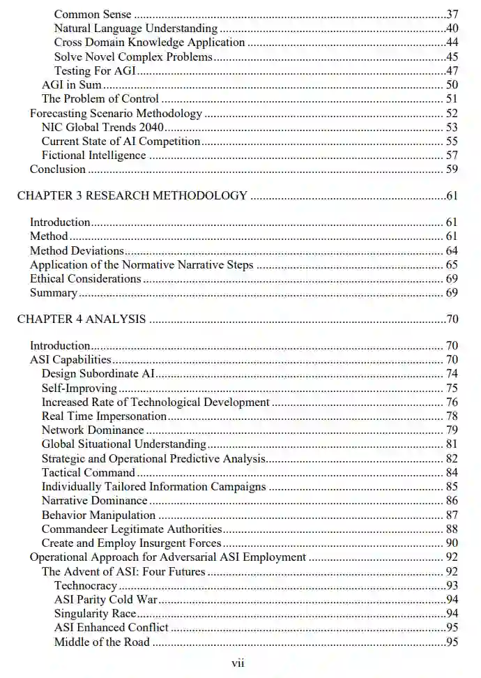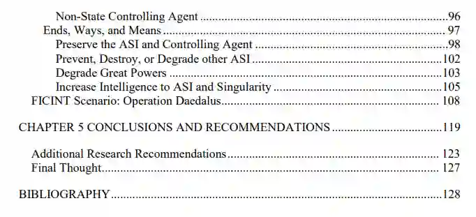 美国防部在超级智能方面的文献有一个明显的空白。这次探索的目的是填补文献空白,确定这种技术所带来的风险程度,并确定对手可能利用ASI攻击美国的潜在漏洞。这将为国防界的决策者提供关于该主题的相关观点,并告知在规划和预测中应考虑该技术的程度。通过额外的研究,如果对手率先获得ASI,可以减轻已确定的漏洞以防止其被利用。最终,本研究的目的是防止ASI军事革命的出现成为一个黑天鹅事件,使美国失去其世界主导地位。