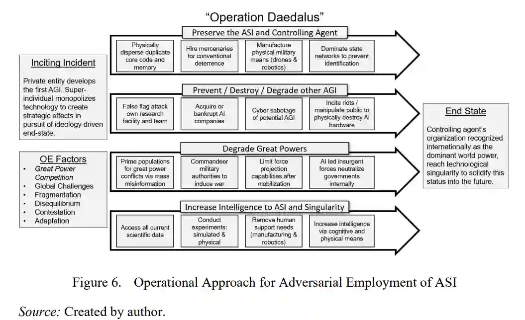 人工智能(AI)是一个快速发展的领域,世界各地的政府和军队越来越多地将其纳入其技术,以创造新的能力。人工智能有可能最终超越人类的智力能力,获得超级智能。这篇论文研究了超级人工智能(ASI)的影响以及美国的对手如何利用它来获得不对称的战略优势。本文发现,人工智能在中期和可能的近期对未来的行动构成了极大的风险,并就美国防部应如何思考并将人工智能的威胁纳入战略规划提出了建议。