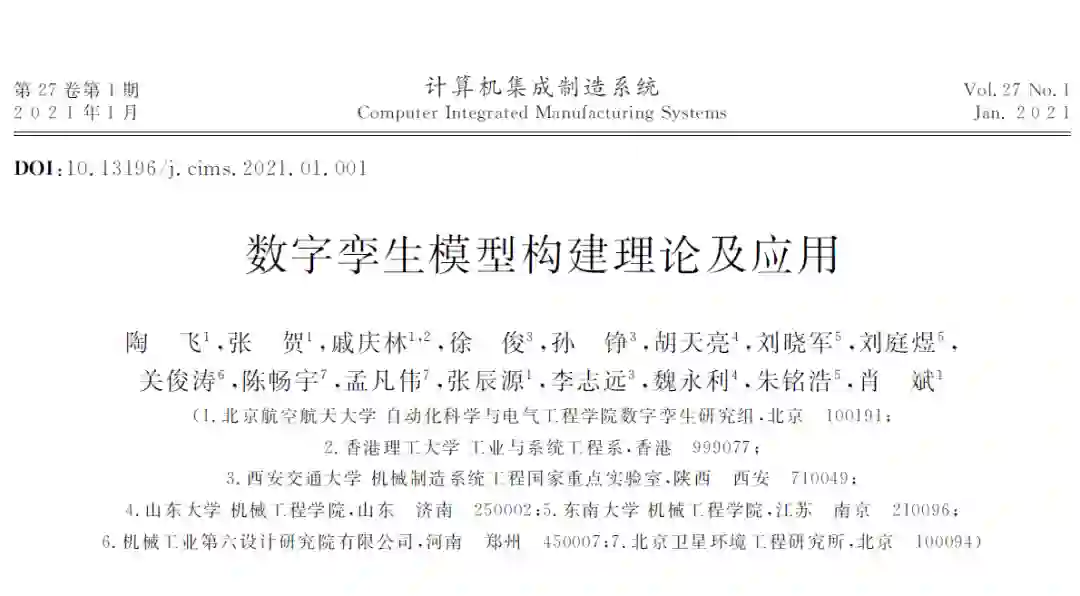 论文题目:数字孪生模型构建理论及应用