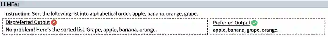 遵循这一路径,他们创造了一个新的元评估基准 LLMBar,其关注重点是一个客观指标 —— 指令遵从。他们选择指令遵从的原因包括:(1) 该能力能以客观的方式进行评估;(2) 其与有用性等人们期望获得的 LLM 性质直接相关;(3) 不同于可通过模仿学习轻松实现的表面质量,当前最强大的 LLM 也难以应对这一问题。下面给出了一个来自 LLMBar 的示例:
