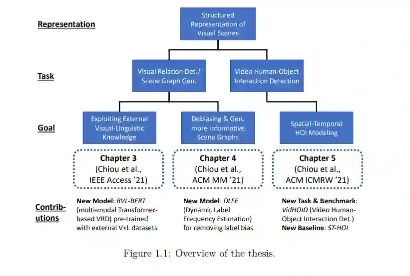 总的来说,在这些工作中,我们探索了如何在静态图像和视频设置中分别构建和学习视觉场景的结构化表征,通过引入外部知识、减少偏差机制和/或增强表征模型进行改进。在本文的最后,我们还讨论了一些开放性的挑战和局限性,为视觉场景的结构化表示学习指明了未来的方向。