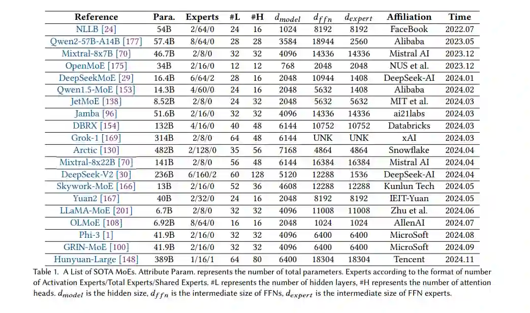 大规模语言模型(LLM)已经彻底改变了人工智能领域,展示了在多个领域,包括自然语言处理[20, 115, 157]、计算机视觉[31, 33, 194]以及多模态任务[86, 123, 162]中的前所未有的能力。像GPT-4[2]、Claude[8]和Gemini[151]这样的模型,在从自然语言理解到复杂推理和代码生成等任务上,取得了显著的成绩。这些模型的出色能力主要归功于其庞大的规模,包括模型参数的数量和训练过程中投入的计算资源。实践中,越来越多的实证研究表明,随着模型规模的增大,性能不断提高,这一现象在语言建模和其他领域的多种扩展规律中得到了体现[5, 19, 74]。然而,这一发展趋势在推理阶段(尤其是实际部署中)面临着巨大的计算效率和资源利用挑战[10, 173, 187, 199]。 混合专家(MoE)模型作为一种有前景的架构解决方案,已经出现并在一定程度上解决了机器学习中的扩展性问题[137]。最早由Jacobs等人[68]于1990年代初提出,作为一种在神经网络中学习子任务的方法,许多基于MoE的模型[37, 53, 155]也在多年的发展中相继问世。在大规模语言模型的时代,MoE再次迎来了复兴[1, 29, 70, 148]。MoE的核心原则是通过一个学习的门控机制将模型的容量分配到多个专门化的子网络或专家上,每次仅激活与当前输入相关的专家。这种方法允许模型保持较大的参数规模,同时通过稀疏激活保持计算开销的可控性。近期的实现,如Mixtral 8x7B[70]、Switch Transformers[42]和GShard[82]等,已经证明了这一策略在将语言模型扩展到万亿级参数的同时,仍能保持合理的计算需求。 MoE在扩展模型方面的成功,使其被广泛应用于各种前沿系统中。例如,谷歌的GLaM[35]在推理时使用显著更少的计算资源就超过了GPT-3的表现。类似地,最近的开源MoE模型Mixtral 8x7B[70],尽管模型规模远小于密集型模型,但仍表现出与更大模型相媲美的竞争性能,并保持了高效的推理特性。表1总结了近年来备受关注的前沿开源MoE模型,进一步突显了MoE架构的巨大潜力。这些成功的案例引发了学术界和工业界对MoE的广泛关注,促使了模型设计[22, 164, 192]、训练技术[34, 47, 101]以及部署策略[15, 16, 183]等方面的创新。 然而,MoE模型在推理中的高效部署仍然面临独特而严峻的挑战[65, 150, 181, 196]。专家激活模式的动态性引入了资源管理和调度的复杂性,这是传统密集型模型所没有的。这些挑战涵盖了多个层面:在模型级别,专家架构和路由机制的设计直接影响推理性能;在系统级别,分布式计算和负载平衡的管理变得日益复杂;而在硬件级别,需要专门的加速技术来处理稀疏计算模式。 为了解决MoE部署和推理中的这些挑战,已经提出了许多方法[72, 125, 133, 170]。尽管这一领域的研究快速增长并显示出其重要性,但也使得识别关键趋势和最佳实践变得困难。现有文献中的一个关键空白是缺乏一个系统化的框架,用于分析和开发综合性的MoE推理优化解决方案。 为了弥补这一空白,本文提供了一个关于MoE模型推理优化技术的全面综述。我们提出了一个分类框架,将优化方法分为模型级、系统级和硬件级优化,如图1所示。这个框架提供了一个结构化的方法来理解和比较不同的优化技术。尽管已有关于大规模语言模型效率[10, 84, 90, 156, 159, 173, 187, 199]和MoE架构[13, 41, 158]的相关综述,但我们的工作是首个专门聚焦于MoE模型推理优化技术的综述。我们系统地分析了从模型架构到硬件加速的不同抽象层级的优化方法,为研究人员和实践者提供了一个宝贵的资源,帮助他们将MoE模型部署到不同的实际应用中。
