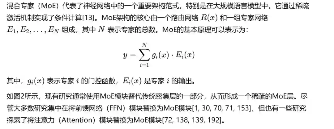 本综述的其余部分组织如下:第2节介绍了MoE模型及其推理特性;第3至第5节分别详细介绍了模型级、系统级和硬件级的优化技术;第6节讨论了未来的挑战和机遇;第7节对综述进行了总结。 混合专家(MoE)的基本原理