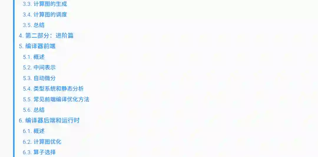 第二部分进阶篇,将站在系统设计的角度,思考在设计现代机器学习系统中需要考虑的问题和解决方案,包括编译器前端、编译器后端和运行时、硬件加速器、数据处理框架、模型部署等内容。