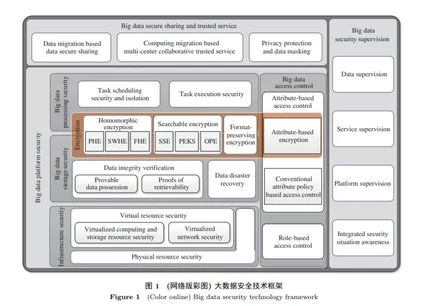 摘要 大数据是经济发展的新动能, 社会发展的新引擎, 塑造国家竞争力的战略制高点, 对人民生活 具有重大影响. 然而随着社会对数据价值认知的提升和大数据平台建设的蓬勃发展, 大数据安全问题 日益成为阻碍大数据应用推广的瓶颈. 同时, 由于大数据技术、框架仍在不断演变当中, 研究人员对大 数据安全内涵的核心认知和关键特征理解还存在差异, 尚未形成相对统一的大数据安全框架. 当前亟 需对大数据安全技术发展现状进行梳理, 为大数据安全重点问题的研究和突破提供参考. 本文结合典 型大数据系统技术框架, 围绕大数据安全需求, 构建了大数据安全技术框架. 在此框架下, 从大数据安 全共享与可信服务、大数据平台安全和大数据安全监管 3 个方面系统梳理了大数据安全关键技术的 研究现状, 囊括了大数据业务流程和大数据系统技术框架所涉及的主要安全机制. 最后总结了大数据 安全技术有待解决的核心问题和发展趋势.