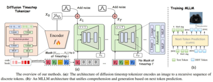 该团队提出的 token 可随着时间步的增加,递归地补偿噪声图像中逐渐损失的属性,使扩散模型能够在任何时间步重建原始图像。这种方法能够有效地整合大语言模型在自回归推理方面的优势以及扩散模型在精确图像生成方面的优势,在一个统一的框架内实现无缝的多模态理解和生成。