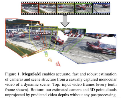从随意捕获的动态场景的单目视频中,MegaSaM 可以准确、快速和稳健地估计相机和场景结构。