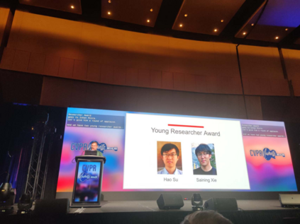 本次大会颁发了两个年轻研究者奖,获奖者为加州大学圣迭戈分校副教授 Hao Su 和纽约大学计算机科学助理教授谢赛宁。该奖项每年颁发给在计算机视觉领域做出杰出研究贡献的年轻研究人员,不过这些研究人员获得博士学位算起不能超过七年。