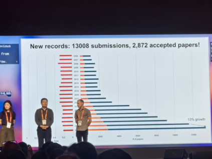 根据会方统计,今年大会共收到 4 万多名作者提交的 13008 份论文。相比去年(11532),今年的投稿数量增长了 13%,最终有 2872 篇论文被接收,整体接收率约为 22.1%。在接收论文中,Oral 的数量是 96(3.3%),Highlights 的数量是 387(13.7%)。
