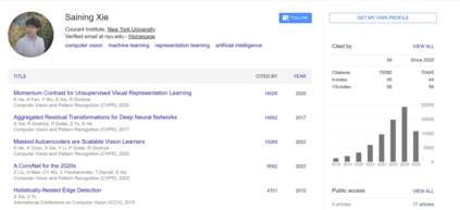 谢赛宁 2013 年本科毕业于上海交通大学;2018 年,他在加州大学圣迭戈分校的计算机科学与工程系获得博士学位,主要研究方向为深度学习和计算机视觉。之后,他曾任 Facebook 人工智能研究室(FAIR)研究科学家,并在 2022 年和 William Peebles 合作发表了 DiT 论文,首次将 Transformer 与扩散模型结合到了一起。目前谢赛宁的论文被引量已经超过 7.5 万。