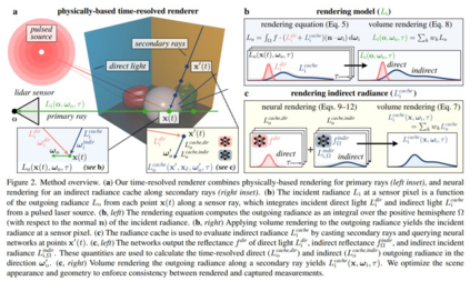 本文提出了首个基于物理的多视角动态光传播神经逆渲染系统。该方法依赖于神经辐射缓存的时间分辨扩展 —— 这是一种通过存储从任意方向到达任意点的无限反射辐射来加速逆向渲染的技术。由此产生的模型能够准确地计算直接和间接光传输效应,并且当应用于从闪光激光雷达系统捕获的测量结果时,能够在强间接光存在的情况下实现最先进的三维重建。此外,本文还演示了传播光的视图合成、将捕获的测量结果自动分解为直接和间接分量,以及诸如对捕获场景进行多视图时间分辨重新照明等新功能。