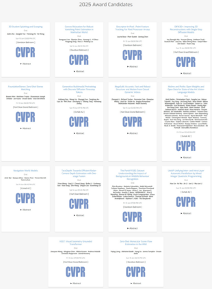 感兴趣的读者请访问这里查看详情: https://cvpr.thecvf.com/virtual/2025/events/AwardCandidates2025