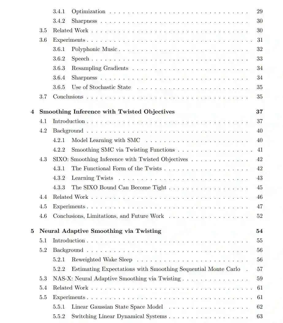 这些方法为非线性潜变量模型中的推断和学习建立了新的标准。例如,在霍奇金-赫胥黎神经膜电位模型中,NAS-X和SIXO相对于以前的方法实现了32倍的推断对数似然度的改进。改进的推断性能导致了参数学习方面的下游收益,并且能够拟合基于具有数百个参数的非线性微分方程的潜变量模型。总的来说,本论文扩展了蒙特卡罗算法,以解决序列建模中的难题。
