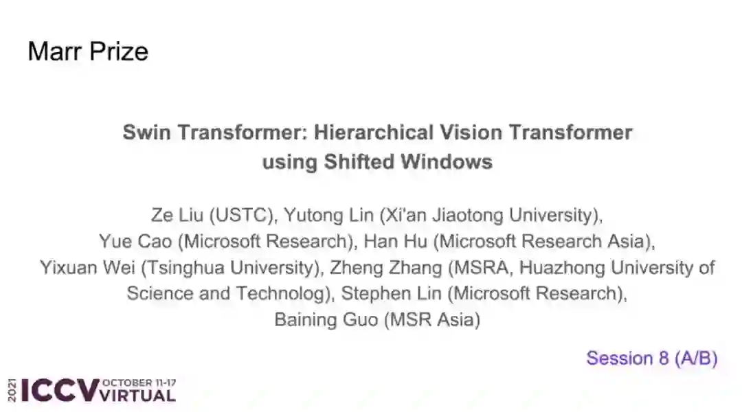 不久前,微软亚研的研究者提出了一种通过移动窗口(shifted windows)计算的分层视觉 Transformer,他们称之为 Swin Transformer。相比之前的 ViT 模型,Swin Transformer 做出了以下两点改进:其一,引入 CNN 中常用的层次化构建方式构建分层 Transformer;其二,引入局部性(locality)思想,对无重合的窗口区域内进行自注意力计算。