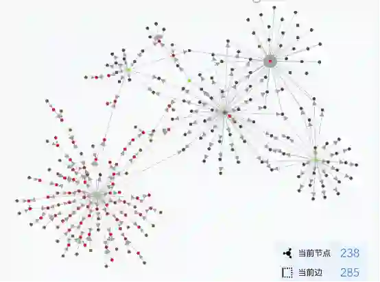 如图 8 ,是在知识图谱中得到的部分企业集团概况,中间节点为公司,发散开的节点为个人,可以看出企业集团都是以某个公司或个人为核心形成的。通过企业所属集团发现,可以快速定位企业所属集团,以及该企业在集团内部的地位,这对分析企业风险传播路径、企业集团经营活动有很大的帮助。