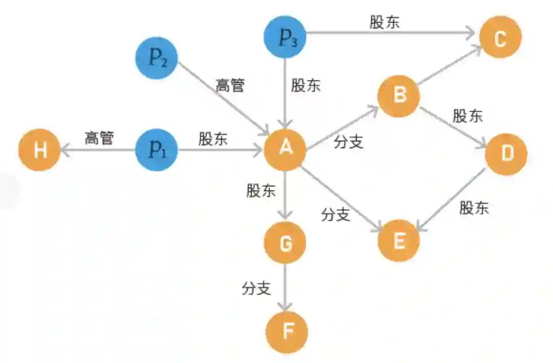 企业集团整体的持股结构一般呈现金字塔式或者围绕式的结构。在本文的企业知识图谱中,企业之间的股东、分支关系,个人与企业之间的股东、高管和联系人关系是组成企业集团的联系。