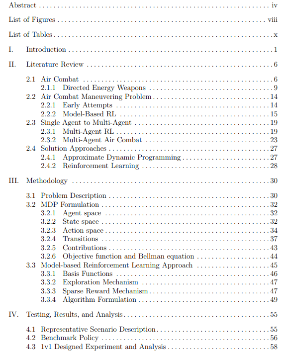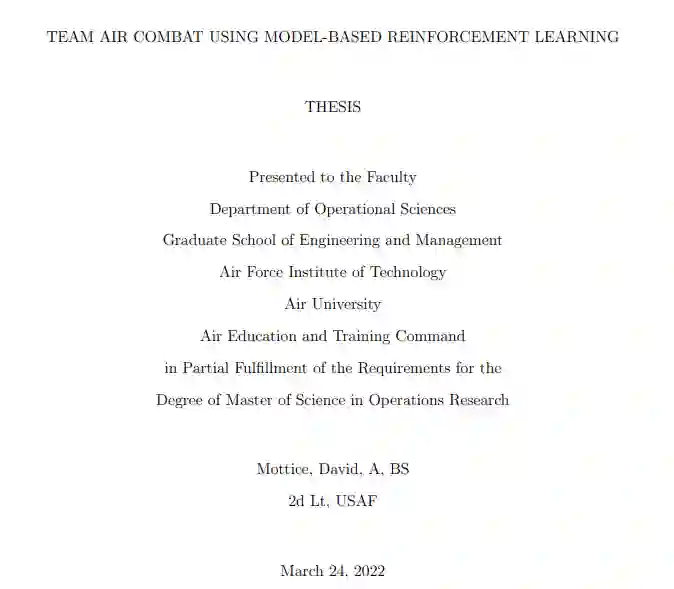 在可视范围内执行空战,需要飞行员在接近1马赫的飞行速度下,每秒钟做出许多相互关联的决定。战斗机飞行员在训练中花费数年时间学习战术,以便在这些交战中取得成功。然而,他们决策的速度和质量受到人类生物学的限制。自主无人驾驶战斗飞行器(AUCAVs)的出现利用了这一限制,改变了空战的基本原理。然而,最近的研究集中在一对一的交战上,忽略了空战的一个基本规则--永远不要单独飞行。我们制定了第一个广义的空战机动问题(ACMP),称为MvN ACMP,其中M个友军AUCAVs与N个敌军AUCAVs交战,开发一个马尔可夫决策过程(MDP)模型来控制M个蓝军AUCAVs的团队。该MDP模型利用一个5自由度的飞机状态转换模型,并制定了一个定向能量武器能力。状态空间的连续和高维性质阻止了使用经典的动态规划解决方法来确定最佳策略。相反,采用了近似动态规划(ADP)方法,其中实施了一个近似策略迭代算法,以获得相对于高性能基准策略的高质量近似策略。ADP算法利用多层神经网络作为价值函数的近似回归机制。构建了一对一和二对一的场景,以测试AUCAV是否能够超越并摧毁一个优势的敌方AUCAV。在进攻性、防御性和中立性开始时对性能进行评估,从而得出六个问题实例。在六个问题实例中的四个中,ADP策略的表现优于位置-能量基准策略。结果显示,ADP方法模仿了某些基本的战斗机机动和分段战术。