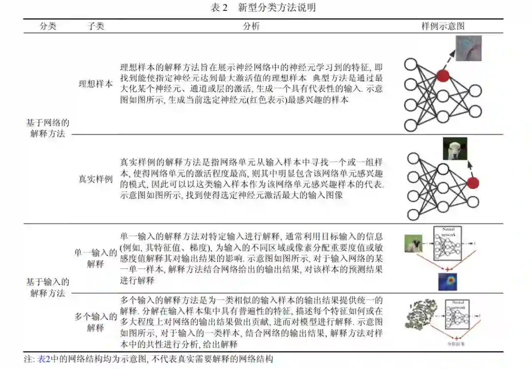 神经网络模型性能日益强大, 被广泛应用于解决各类计算机相关任务, 并表现出非常优秀的能力, 但人类 对神经网络模型的运行机制却并不完全理解. 针对神经网络可解释性的研究进行了梳理和汇总, 就模型可解释性 研究的定义、必要性、分类、评估等方面进行了详细的讨论. 从解释算法的关注点出发, 提出一种神经网络可解 释算法的新型分类方法, 为理解神经网络提供一个全新的视角. 根据提出的新型分类方法对当前卷积神经网络的 可解释方法进行梳理, 并对不同类别解释算法的特点进行分析和比较. 同时, 介绍了常见可解释算法的评估原则和 评估方法. 对可解释神经网络的研究方向与应用进行概述. 就可解释神经网络面临的挑战进行阐述, 并针对这些挑 战给出可能的解决方向.近年来, 人工智能 (artificial intelligence, AI) 成为最重要的科学研究领域之一, 具有巨大的社会影响力, AI 技 术被广泛应用于各个领域[1,2] . 随着可扩展的高性能基础设施的发展, AI 系统在许多领域已成为不可或缺的工具, 甚至在越来越多的复杂任务上完成度超过了人类水平[3,4] . 然而, AI 系统在预测、推荐和决策支持方面的出色表现通常是通过采用复杂的神经网络模型来实现的, 这些 模型隐藏了内部流程的逻辑, 此类模型通常被称为黑盒模型[5–7] . 神经网络模型通过非线性、非单调和非多项式函 数来近似数据集中变量之间的关系, 这使得内部运行原理高度不透明. 神经网络模型经常因为错误的原因在训练 集中得到正确的预测结果, 导致模型在训练中表现出色, 但在实践中表现不佳[8–11] . 因此, 神经网络的黑盒特性使 得人类难以完全相信神经网络模型的决策. 人类有进一步了解神经网络模型的意愿. 对于决策能力较人类更差的模型, 希望可以在深度了解模型后发现 问题并解决问题, 从而帮助模型改善性能. 对于决策能力与人类相似的模型, 希望可以解释决策结果, 从而使人类 信任模型, 应用模型. 对于决策能力较人类更好的模型, 希望可以分析其决策机制, 帮助人类更好更深入地理解需 要解决的问题. 可解释人工智能 (explainable AI, XAI)[12]研究致力于以人类可理解的方式解释人工智能模型[13] , 使得人类能 够理解模型的内部运行逻辑和决策结果, 为模型的故障排除和广泛使用提供方便. 可视化和解释神经网络模型的 研究工作引起了越来越多的关注. 2018 年, 欧洲议会在通用数据保护条例 (general data protection regulation, GDPR) 中引入关于自动化决策的条款, 规定数据主体有获得自动化决策中涉及的相关解释信息的权利. 此外, 在 2019 年, 人工智能高级专家组提出了可信赖人工智能的道德准则. 尽管法律上对这些条款存在不同意见[14,15] , 但 普遍认同实施这样一个原则的必要性和紧迫性. 美国国家标准与技术研究院 (National Institute of Standards and Technology, NIST) 于 2020 年 8 月发布关于 XAI 的 4 项原则[16] : 可证明性 (解释结果可以被证据证明)、可用性 (解释结果能够被模型使用用户理解并对用户有意义)、准确性 (解释结果必须准确反映模型运行机制)、限制性 (解释结果能识别出不适合其自身运行的情况). 本文主要对卷积神经网络的可解释算法进行回顾和总结, 第 1 节主要针对模型可解释的定义和研究必要性进 行讨论, 归纳受到了广泛认可的可解释定义和该领域内的常见词汇定义, 并从解决伦理问题、加强模型可靠性和 优化模型性能等几个方面, 介绍对模型进行解释的必要性. 第 2 节对近年来模型可解释的相关研究进行简要分析, 首先对可解释研究具有代表性的研究和发展脉络进行梳理, 随后介绍目前已有的可解释算法的分类方法, 并总结 现有分类方法普遍存在的问题. 第 3 节提出一种对神经网络可解释算法进行分类的新方法, 为理解可解释算法提 供新角度. 依据新的分类方法, 对当前卷积神经网络的可解释方法进行梳理, 并对不同类别解释算法的特点进行分 析和比较. 第 4 节中介绍常见的可解释算法的评估原则和评估方法. 第 5 节讨论可解释神经网络的研究方向、实 际应用和当前面临的挑战, 对解释算法的目标和应用任务等与可解释性研究密切相关的内容进行阐述, 并就神经 网络解释模型当前面临的问题进行简述, 针对这些挑战给出可能的解决方向. 第 6 节对全文进行总结.