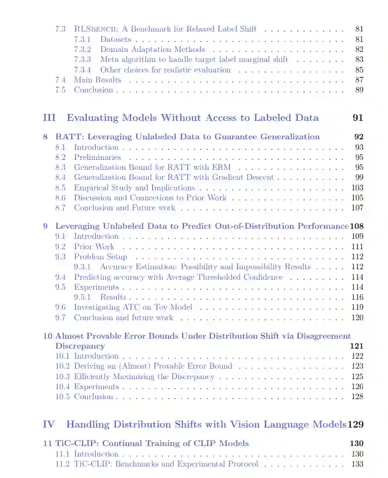 总体而言,本论文通过开发利用未标注数据在分布变化下适应和评估模型的技术,拓展了稳健机器学习的前沿。这里展示的工作是朝着在分布变化面前开发稳健机器学习全面工具包迈出的一步。