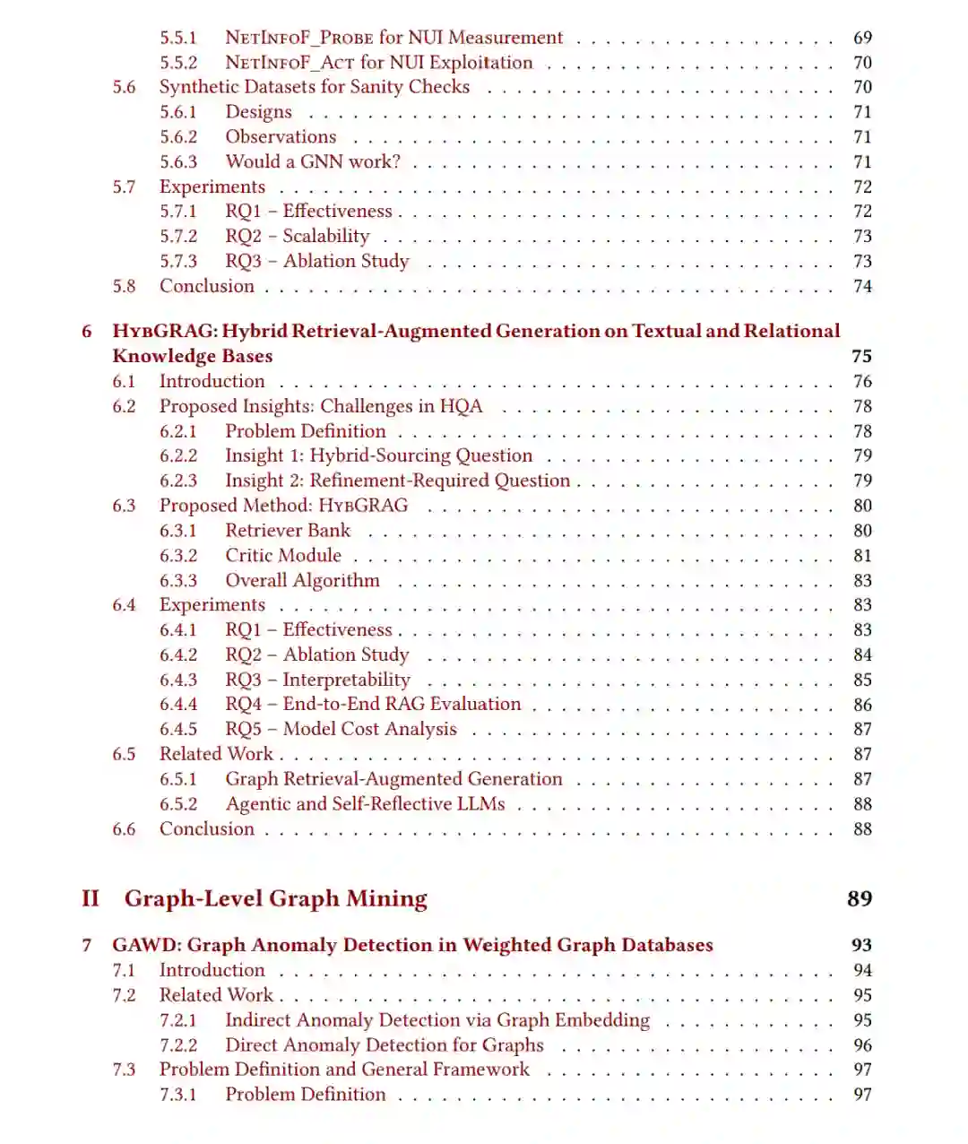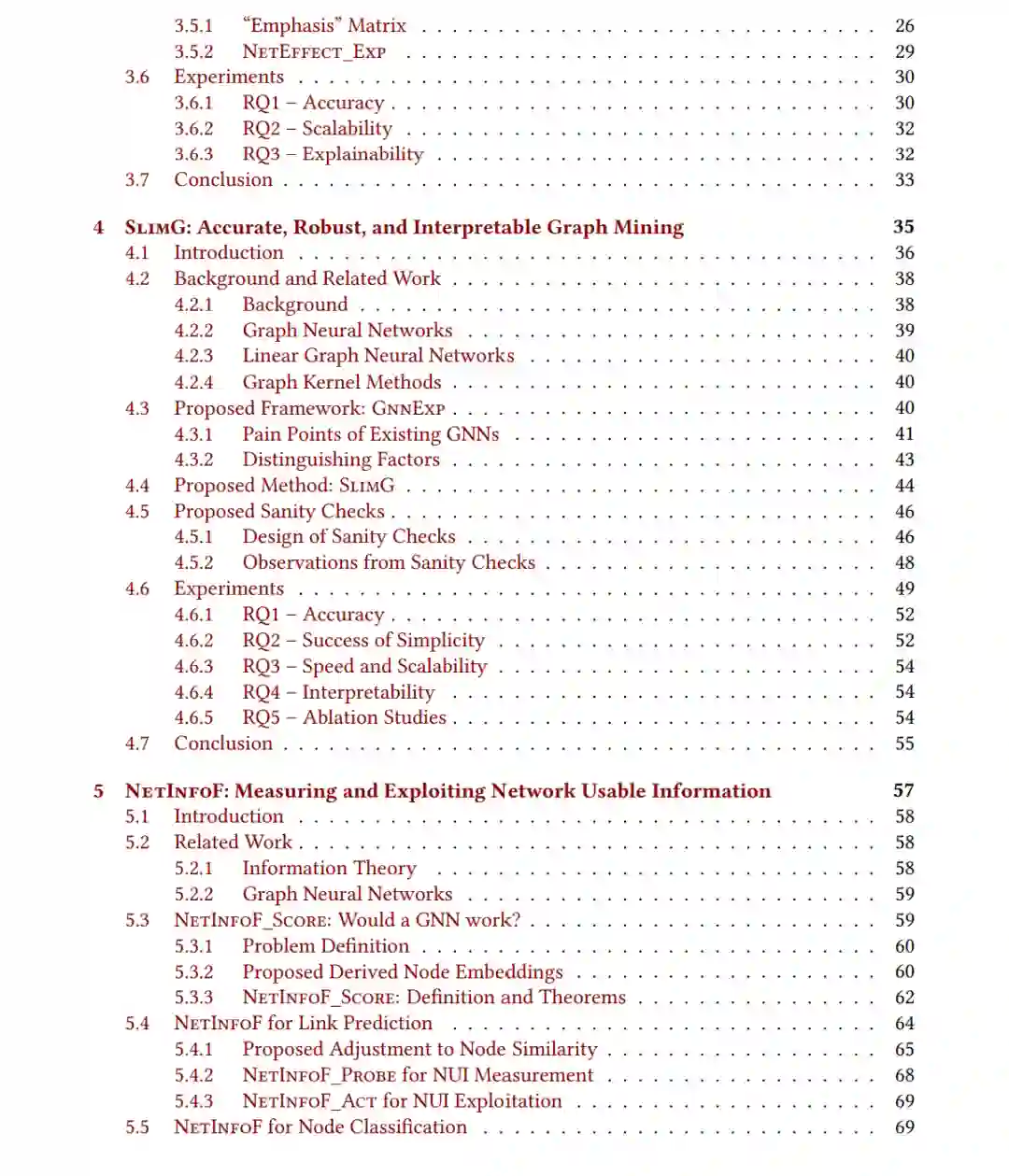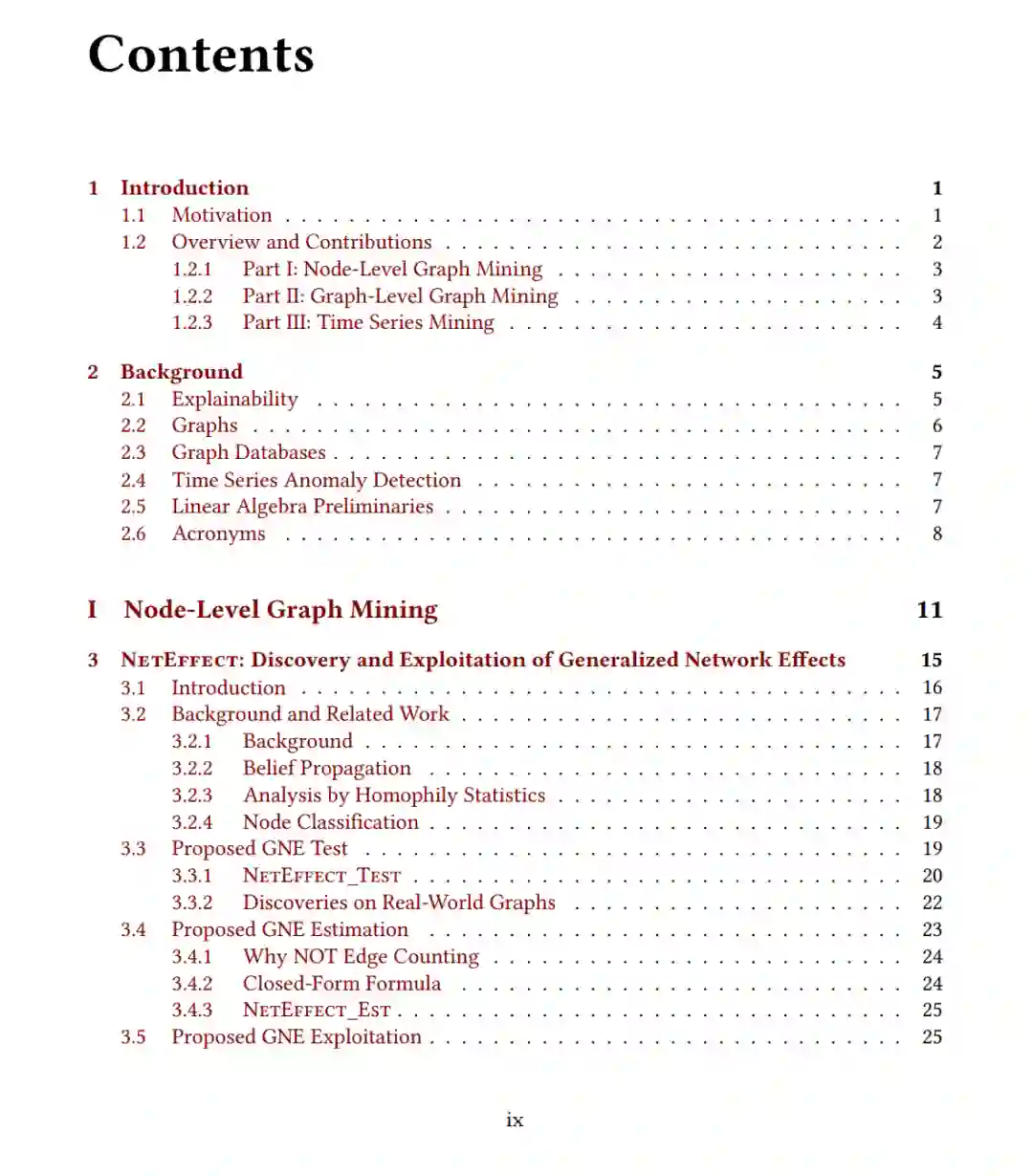第一部分聚焦于节点级图挖掘。我们提出了多种算法用于分析图中的不同信息类型,例如图结构所体现的网络效应,以及节点特征中所包含的可用信息。我们提出的线性方法不仅本身具有可解释性和高效率,而且在节点分类与链接预测任务中优于现有基线。在节点分类任务中,我们的方法相较第二优方法提升了 10.3% 的准确率,同时速度快了 2.5 倍。在链接预测任务中,我们的方法平均排序为 1.1,在 12 个真实世界数据集中的 11 个上表现优于基线。在图检索增强生成(graph retrieval-augmented generation)的应用中,我们的智能体方法取得了 51% 的平均相对性能提升。