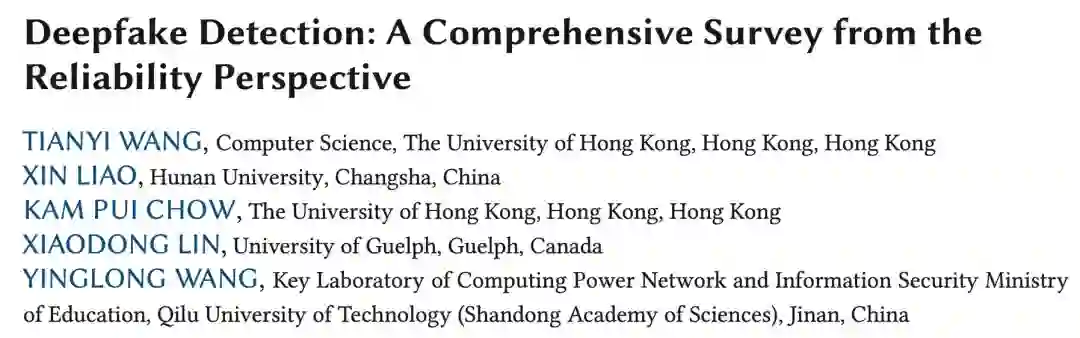 论文标题:Deepfake Detection: A Comprehensive Survey from the Reliability Perspective * arXiv 地址: https://arxiv.org/abs/2211.10881
