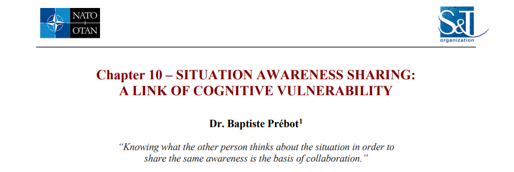 这种伙伴关系可以成为认知战的目标。对攻击者来说,这是一个通过利用所有分享工具(无论是技术还是社会工具)来影响个人表述的问题。 面对影响或操纵的威胁,防御者必须处理这种风险,并促进强有力的态势感知共享的条件。