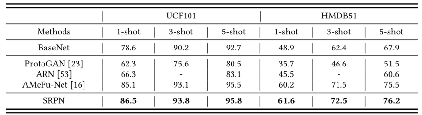 本文在三个常用的数据集MiniKinetics,UCF101和HMDB51做了相关实验。实验结果可以看出该方法获得了较好的表现,并验证了其有效性。