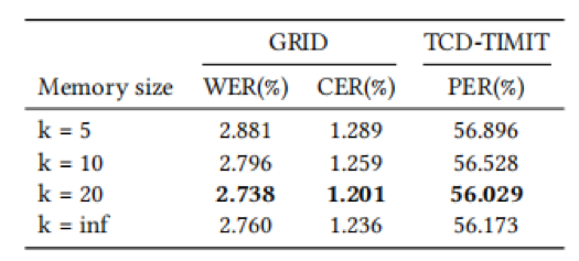 此外,我们探究了不同的训练策略、记忆块更新策略,以及记忆块尺寸的影响。