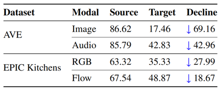 表1 AVE数据集上不同模态数据的模型跨域后的准确率比较
