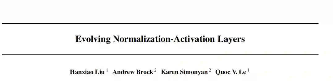 归一化层和激活函数是深度神经网络中经常采用的关键组件。 除了将它们分开设计之外,我们将它们统一为一个计算图,并从低级开始发展其结构。 我们的层搜索算法EvoNorms发现,EvoNorms是超越现有设计模式的一组新的进化激活层。 这些层中的几个层具有独立于批量处理统计信息的属性。 我们的实验表明,EvoNorms不仅在包括ResNets,MobileNets和EfficientNets在内的各种图像分类模型上表现出色,而且还可以很好地转移到Mask R-CNN进行实例分割和BigGAN进行图像合成,从而大大优于基于BatchNorm和GroupNorm的图层。