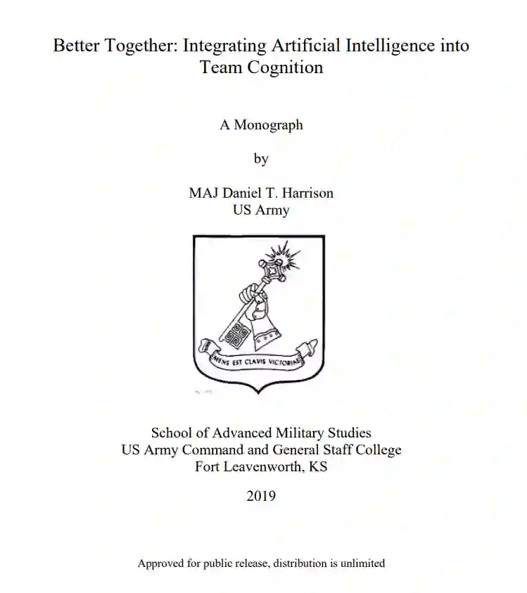 合成有机团队认知的两大障碍是美陆军领导的文化阻力和军事决策的结构框架。首先,也是最重要的一点是,领导者必须持续观察人工智能工具并与之互动,建立信心并接受其提高认知能力和改善决策的能力。在引入人工智能工具的同时,几乎肯定会出现关于机器易犯错误或充满敌意的说法,但必须通过展示人工智能的能力以及与人类团队的比较,来消除和缓和对其潜在效力的怀疑。将人工智能工具视为灵丹妙药的健康而合理的怀疑态度有可能会无益地压倒创新和有效利用这些工具的意愿。克服这一问题需要高层领导的高度重视和下属的最终认可。其次,这些工具的结构布局很可能会对它们如何快速体现自身价值产生重大影响。开始整合人工智能工具的一个看似自然的场所是在 CTC 环境中,以及在大型总部作战演习的大型模拟中。最初的工具在营级以下可能用处不大,但如果纳入迭代设计、军事决策过程或联合规划过程,则几乎肯定会增强营级及以上的军事规划。虽然在本作品中,对工具的描述主要集中在与指挥官的直接关系上,但在最初的介绍中,与参谋部的某些成员(包括执行军官或参谋长、作战军官和情报军官)建立直接关系可能会更有用。与所有军事组织一样,组织内个人的个性和能力必须推动系统和工具的调整,使其与需求保持平衡。