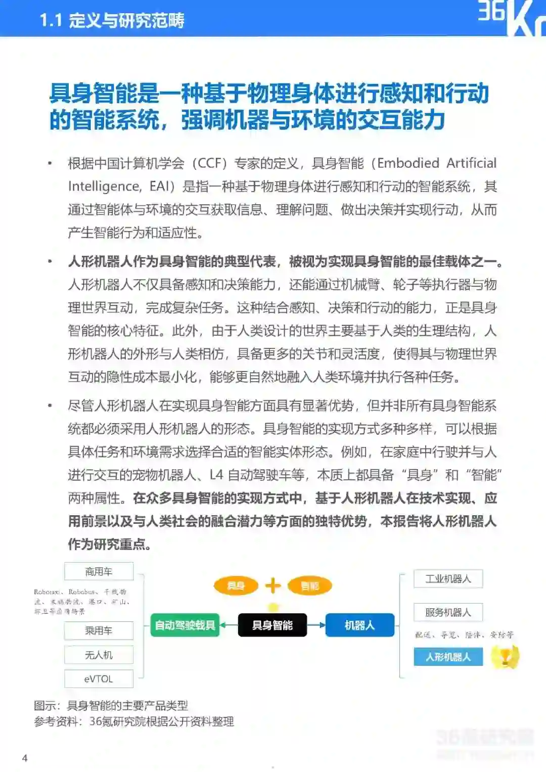 根据中国计算机学会(CCF)专家的定义,具身智能(Embodied Artificial Intelligence, EAI)是指一种基于物理身体进行感知和行动的智能系统,其通过智能体与环境的交互获取信息、理解问题、做出决策并实现行动,从而产生智能行为和适应性。人形机器人作为具身智能的典型代表,被视为实现具身智能的最佳载体之一。但是,并非所有具身智能系统都必须采用人形机器人的形态。具身智能的实现方式多种多样,可以根据具体任务和环境需求选择合适的智能实体形态。