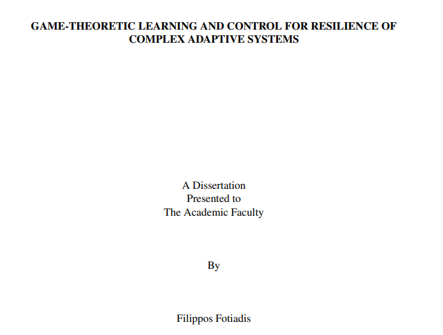 现今许多动态系统都属于所谓信息物理系统(CPS)的范畴。也就是说,它们是具有高度复杂性和异质性的系统,由各种数字和模拟组件组成,这些组件通过多个通信渠道相互通信。例如,小到我们的手机是一个CPS,大到电网也是一个CPS。然而,CPS能够融合复杂结构的能力也是其致命弱点:这导致了大量可能被渗透的入口点,使其容易受到试图造成破坏的恶意对手的攻击。这也带来了许多不确定性,而传统的基于模型的控制方法无法有效处理。基于这一现实,本论文聚焦于两个目标:创建基于博弈论和优化的决策工具,使信息物理系统能够抵御对手攻击;以及开发基于学习和无需近似的控制方法,以增强其在环境和模型不确定性下的韧性。