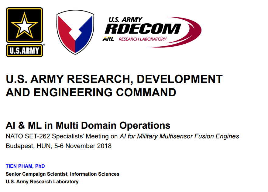 目标:研究和开发人工智能体(异构和分布式),在有争议、恶劣和拥挤的环境中快速学习、适应、推理和行动