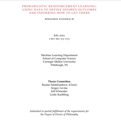 这篇论文基于初步论文提案中提出的工作在两个主要方向上进行了深入。首先,我们探讨了递归分类的几何解释(第2章),在表示学习和强化学习之间建立了紧密的联系(第3章)。这种联系使我们能够将递归分类扩展到通过有限数量的奖励标记状态后设定的任务,并使我们能够将这些方法应用到基于真实世界图像的机器人操作任务上。其次,我们扩展了RL的潜在变量观点(第4章和第5章)以在学习的表示上执行推断(第5.6节)。这种扩展使我们的方法能够扩展到更高维度的任务,并提供了大量的计算加速。