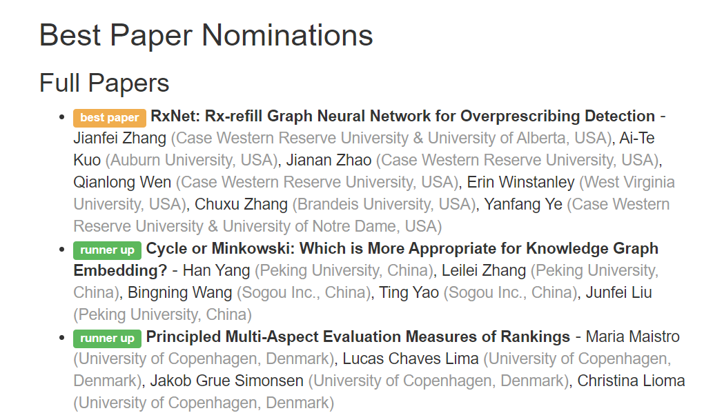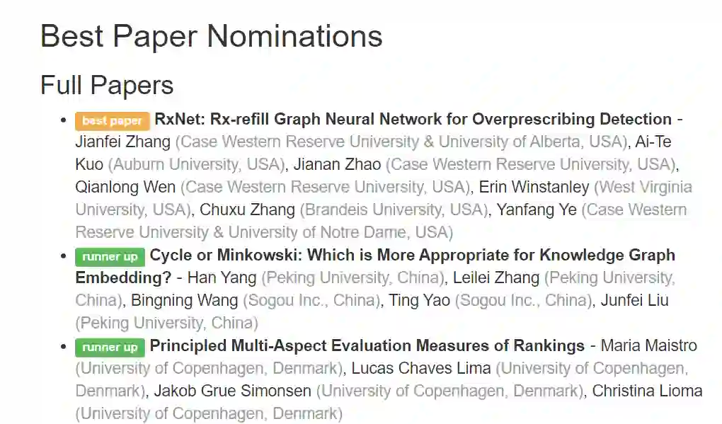 最近,数据挖掘顶会 ACM CKIM 2021 上,CWRU图神经网络过度处方获最佳论文!伍斯特理工学院-深度迁移抑郁筛查获最佳应用论文