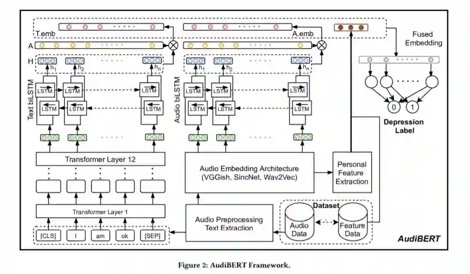 抑郁症是导致残疾的主要原因,造成巨大的社会经济损失。尽管早期发现对改善预后至关重要,但这种精神疾病在很大程度上仍未得到诊断。通过将这种筛选功能无处不在地整合到虚拟助手和智能手机技术中,从声音分类抑郁症有望带来革命性的诊断。不幸的是,由于隐私问题,带有抑郁标签的音频数据集参与者很少,导致当前的分类模型性能低下。为了应对这一挑战,我们引入了音频辅助BERT (AudiBERT),这是一种利用人类声音的多模态特性的新型深度学习框架。为了缓解小数据问题,AudiBERT将通过双重自注意机制增强的各自模式的预训练的音频和文本表示模型集成到深度学习体系结构中。应用于抑郁症分类的AudiBERT始终实现了令人满意的性能,与15个主题问题数据集的最先进的音频和文本模型相比,F1分数增加了6%至30%。使用针对医疗和一般健康问题的答案,我们的框架分别获得高达0.92和0.86的F1分数,证明了使用语音技术从非正式对话中筛选抑郁症的可行性。