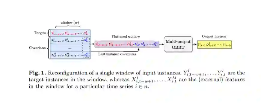 时间序列预测是机器学习中的一项重要任务,它有着广泛的应用,包括但不限于预测电力消耗、交通和空气质量。传统的预测模型依赖于滚动平均线、矢量自回归和自回归综合移动平均线。另一方面,最近提出了深度学习和矩阵分解模型来解决同样的问题,以获得更有竞争力的表现。然而,这种模型的一个主要缺点是,与传统技术相比,它们往往过于复杂。在本文中,我们提出了一个著名的机器学习基线,梯度推进回归树(GBRT)模型的显著深度学习模型的结果。与深度神经网络(DNN)模型相似,我们将时间序列预测任务转化为基于窗口的回归问题。此外,我们对GBRT模型的输入和输出结构进行特征工程,使每个训练窗口的目标值与外部特征连接,然后扁平化形成一个多输出GBRT模型的输入实例。我们对过去几年在顶级会议上展示的8个最先进的深度学习模型的9个数据集进行了比较研究。结果表明,基于窗口的输入变换提高了一个简单的GBRT模型的性能,超过了本文评估的所有最新的DNN模型。