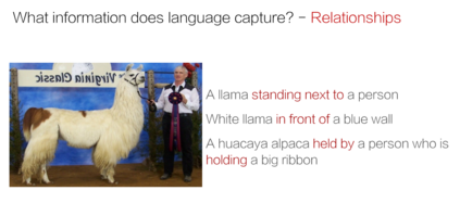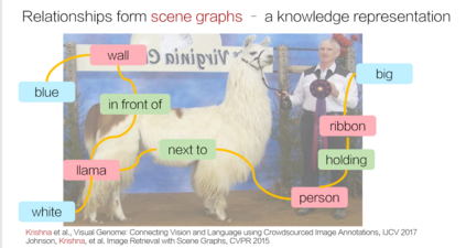 简介: 计算机视觉研究大多都集中在不重叠的目标对象上,然而,目标对象却不足以描述丰富的视觉知识,于是,研究者就通过语言特征来获取更多的信息。通过图片与文字叙述相结合的多模态信息融合来获取一个场景图谱。