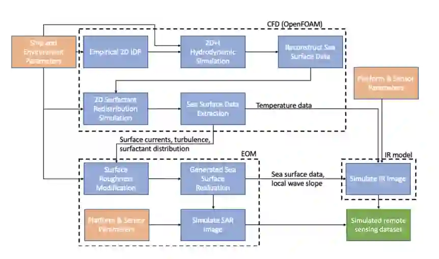 在一个工作流程中描述并实施了建模和仿真工具,以开发一种模拟船尾的方法,然后模拟这些船尾的合成孔径雷达(SAR)和红外(IR)图像。对几种不同的海洋环境和模拟遥感平台进行了参数研究,以生成初步数据集,用于训练和测试基于神经网络的船舶尾流探测模型。对几种不同的模型结构进行了训练和测试,这些模型结构在对输入的合成孔径雷达图像是否包含持续性船尾进行分类方面具有很高的准确性。研究人员还探索了几种数据融合模型,以了解不同合成孔径雷达波段的数据融合如何改进船尾探测,其中一些神经网络和数据融合模型的组合实现了完美或接近完美的性能。最后,创建并讨论了跨多种传感器模式的多物理场数据融合的未来研究大纲。