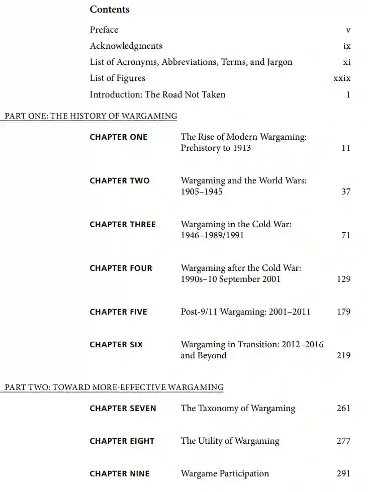 然而,我从兵棋推演社区的年度聚会"联结"的参与者那里得到了最宝贵的见解和鼓励。自1993年以来,"联结"将来自美国和世界各地的学术和娱乐性兵棋推演从业者以及各军种的军事人员聚集在一起。最后,我在美国和盟国军队中的同事,特别是美国空军总部、空军物资司令部和空军研究实验室,教会了我很多关于兵棋推演及其应用的知识。这本书确实是兵棋推演界的作品。