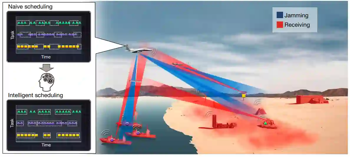 必须根据具体任务和威胁环境平衡使用EW平台的传感和干扰资源,以有效地打击射频通信和雷达目标。一个EW任务可能包括与一系列的威胁交战,从需要有限的传感支持的已知的、不太敏捷的威胁到需要精确的传感和交战时间表来跟踪和击败的复杂的、适应性强的威胁。来自单一平台的传统EW传感和干扰资源是按时间尺度管理和安排的,可以在任务前分配或在任务中由操作人员调整。然而,必须被感知和打击的可适应的对手目标的数量正在增加,超出了传统的人在环形方法的可行性。在威胁发射器的时间尺度上保持有效性需要自主优化方法,以机器速度平衡和分配EW资源。未来的分布式、协作式EW任务包括多个平台一起工作,并适应实现特定的EW任务目标,这将需要分布式资源管理。