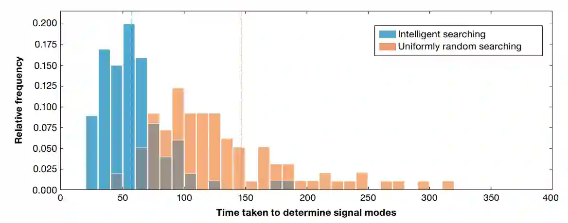 然而,我们感兴趣的可能不仅仅是智能体的原始干扰能力。因此,我们在图12中比较了智能资源智能体与统一搜索策略的学习性能。这里,蓝色直方图(及其相关的平均值)描述了智能体在每个历时(即时间离散间隔)采取行动以尽可能减少其对操作环境的不确定性的性能,而橙色直方图(及其相关的平均值)描述了在每个历时均匀随机扫描的智能体的性能。智能体学习对抗性信号的频率范围和时间模式的速度比处理通过在所有时间均匀随机扫描获得的信息的智能体要快。