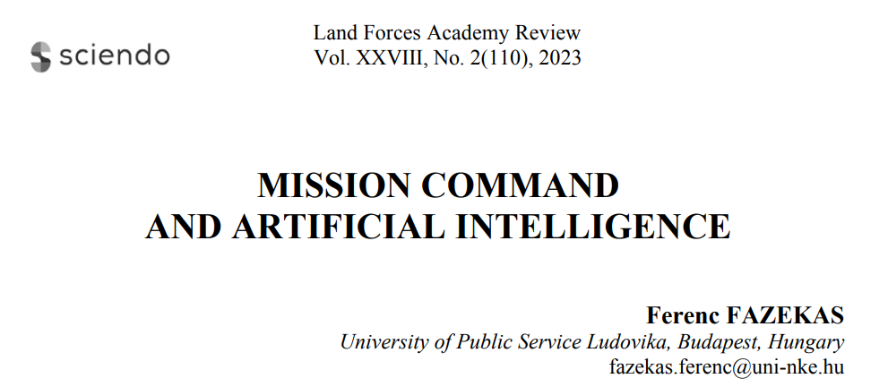 全世界的军队都在努力寻找他们的 "哲人之石",为他们提供能够战胜敌人的解决方案。有几种概念和技术被认为可以胜任这一职位,其中一些属于指挥与控制领域。在这些概念中,有一个在西方世界被广泛认为是改变游戏规则的候选概念,即任务式指挥方法。在技术方面,有几项创新可供研究,但最有前途和最流行的是人工智能。