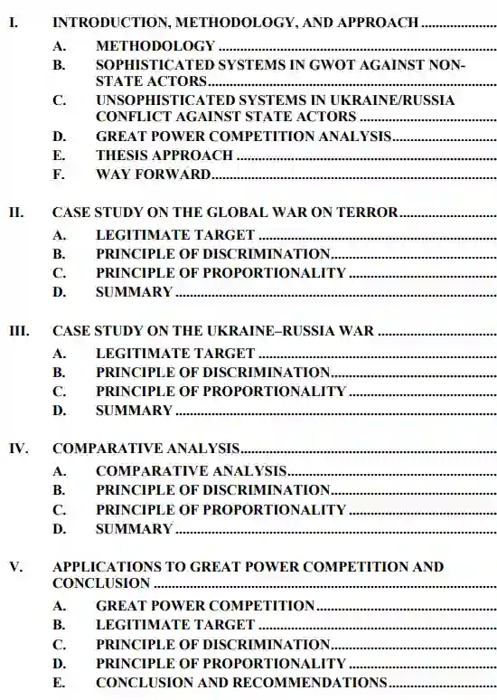 无人机系统(UAS)在现代战争中的普及已重塑军事行动的战略与伦理考量。本论文通过考察针对国家与非国家行为体使用的精密/简易无人机历史案例,研判其在大国竞争(GPC)——特别是太平洋潜在冲突——中的未来角色。基于全球反恐战争与俄乌冲突的对比分析,揭示战时法核心原则(区分性与相称性)在战场的实践逻辑及其对威慑与作战策略的塑造作用。
