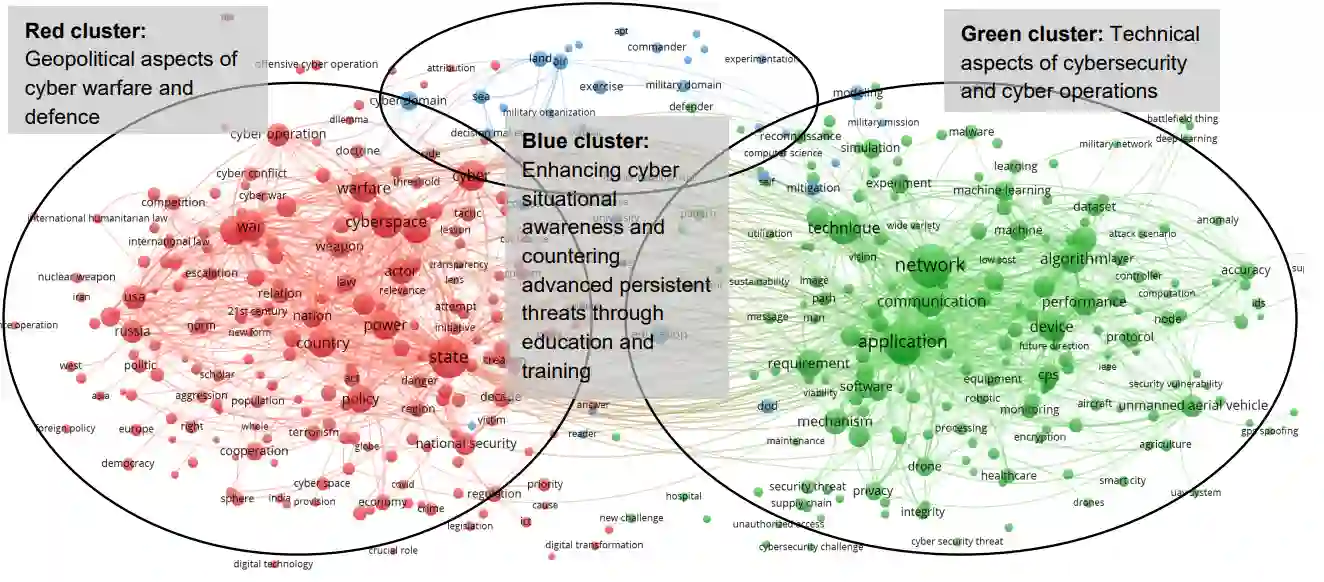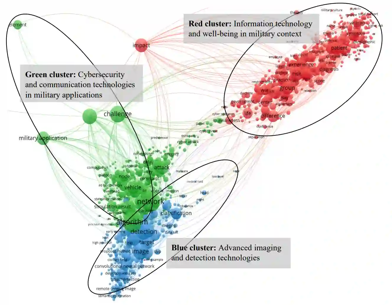 图 2.1: 网络安全技术和国防学术的科学计量图谱