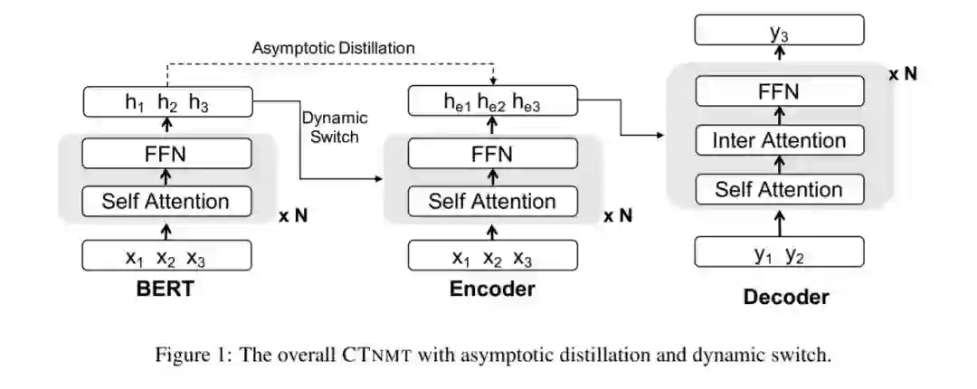 GPT-2和BERT证明了在各种自然语言处理任务中使用预训练语言模型(LMs)的有效性。然而,LM调优在应用于资源丰富的任务时常常会出现灾难性的遗忘。在这项工作中,我们介绍了一个协调的训练框架(\方法),这是把预训练的LMs集成到神经机器翻译(NMT)的关键。我们提出的Cnmt包括三种技术: a)渐近精馏,以确保NMT模型能够保留预先训练好的知识; b)动态切换门,避免对预先训练知识的灾难性遗忘 ;c)根据预定策略调整学习进度的策略。我们在机器翻译方面的实验表明,WMT14的英德语言对中,“方法”最多可获得3个BLEU分数,甚至超过了之前最先进的训练前辅助NMT的1.4个BLEU分数。而对于包含4000万对句子的大型WMT14英法任务,我们的基本模型仍然比最先进的Transformer大模型提高了1个以上的BLEU分数。