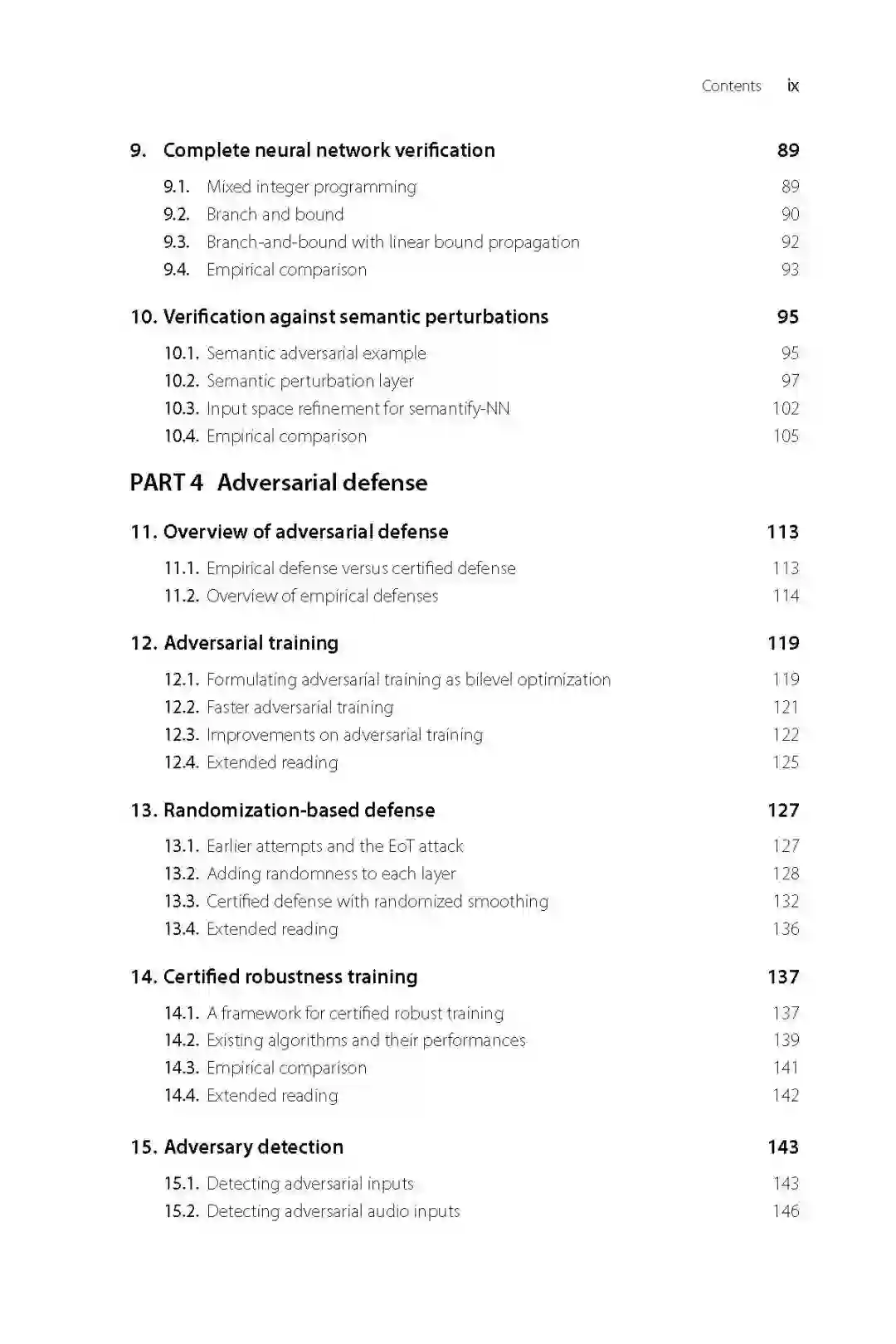 本书旨在提供对抗性鲁棒性的整体概述,涵盖机器学习的生命周期,从数据收集,模型开发,到系统集成和部署。内容为机器学习的对抗鲁棒性研究提供了一套全面的研究技术和实用工具。本书涵盖了以下四个研究重点在对抗鲁棒性:(i)攻击-寻找机器学习的失败模式;(ii)防御——加强和保护机器学习;核证-制定可证明的稳健性业绩保证;和(iv)应用——基于对抗性鲁棒性研究发明新的用例。