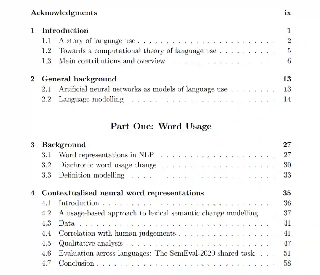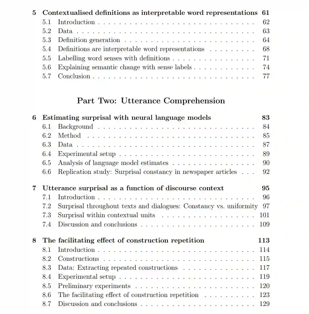 本论文探索了使用人工神经网络作为人类语言使用模型的新方法,目的是为各种语言科学家建立新方法并启动新的研究方向:从历史语言学家、社会语言学家和词典编纂者到认知科学家和神经科学家。它包含了一系列关于语言理解和语言产出的研究,强调在适当考虑语言语境时,它们的建模是如何受到影响的。论文分为三个部分。