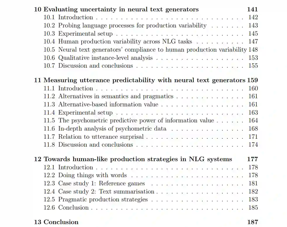 第一部分介绍了两种研究单词使用方式的新方法,这些方式是根据单词在句子中出现的语境:第一种方法包括从语言模型中提取、分组及分析语境化的神经表示;第二种方法使用语言模型生成的人类可读单词定义,这些定义是根据单词使用示例提示生成的。以词汇语义变化分析为例应用,因为它需要动态捕捉单词意义及其细微的语境决定的调整。 第二部分专注于作为语境感知模拟的神经模型语言理解者。我从神经语言模型获得信息率的惊奇估计,并使用这些来测试话语产出的心理语言学理论,这些理论假设说话者监控信息率,进而监控理解成本。研究结果挑战了合理使用通信渠道的既定假设,特别是在对话环境中——但总的来说,它们确认话语产出策略可以描述为有效地包含对话者的理解努力。 第三部分探讨了神经文本生成器作为语言产出模型的潜力。我测试了生成器产生的语言是否具有与人类产出相一致的统计特性,然后使用它们获得信息率的可解释度量,这些度量与第二部分使用的度量互补。我总结了论文其他部分的见解,形成了一个关于人类式——高效、交流有效且有观众意识——语言产出行为的人工模拟的正式框架。